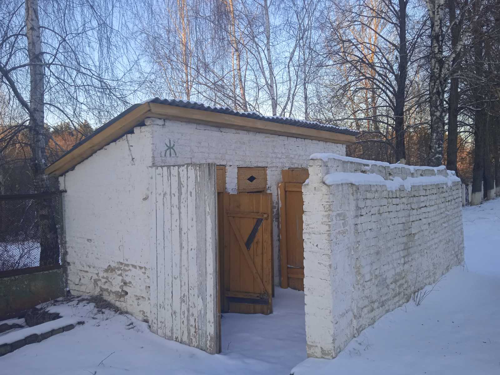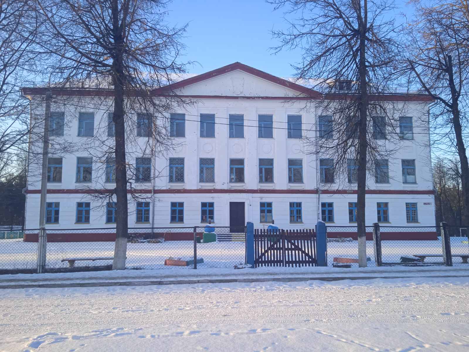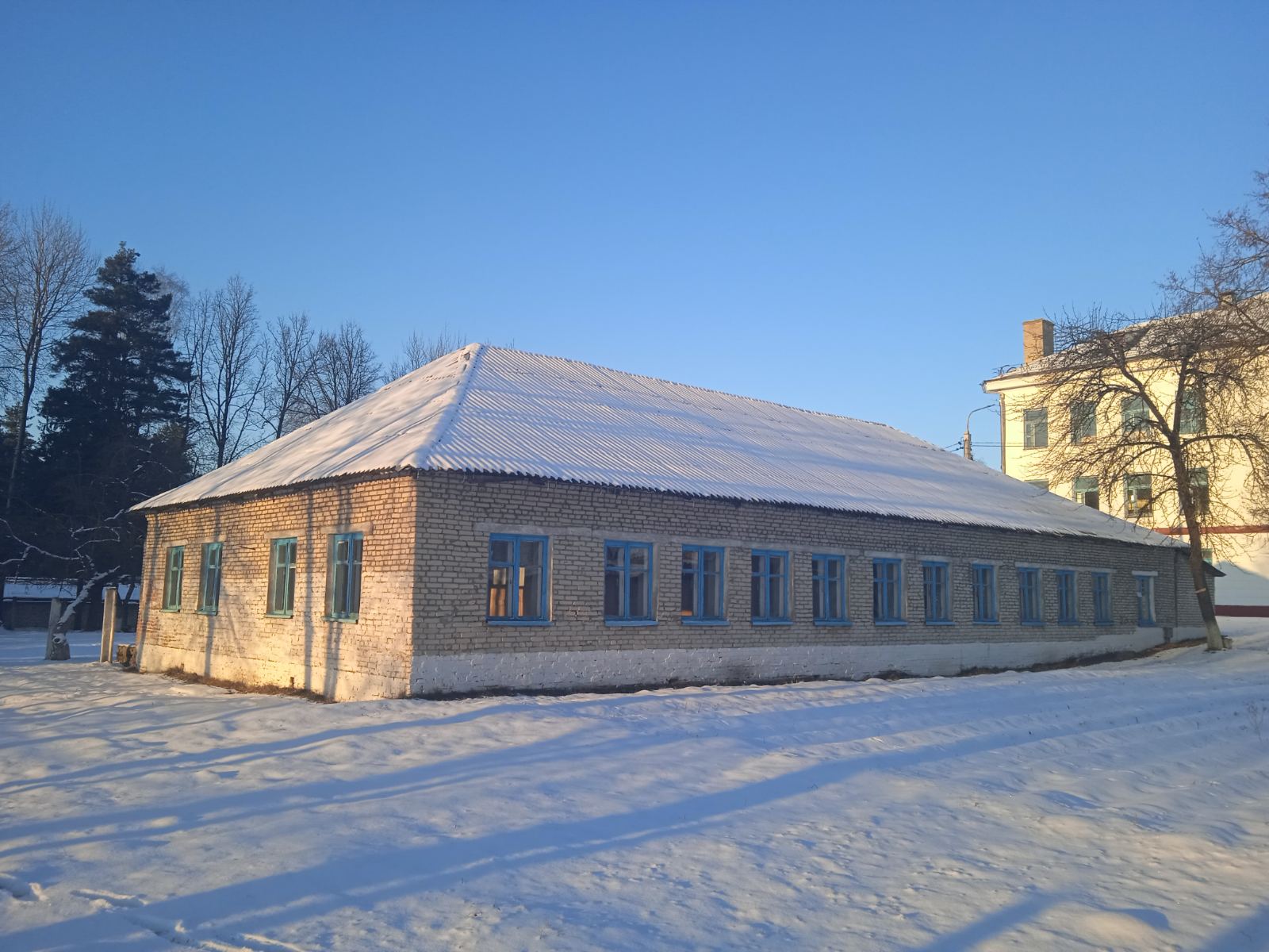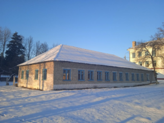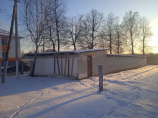 Здание школы со столовой, сараем, тиром, овощехранилищем и принадлежностями