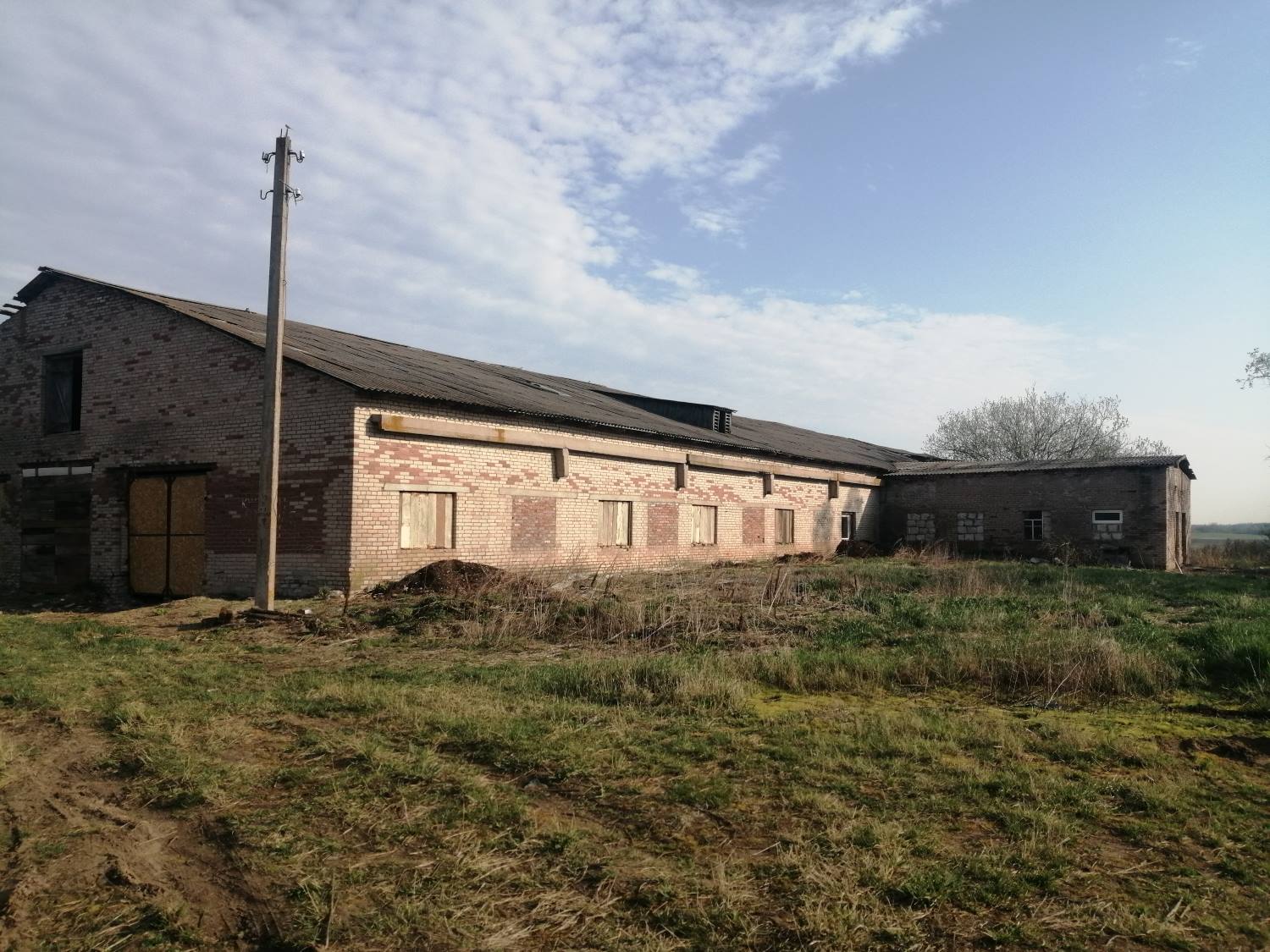 капитальное строение (здание фермы) с двумя пристройками – одноэтажное кирпичное, площадью 1524,5 кв.м, фундамент бутобетонный, крыша асбестоцементный волнистый лист, 1989 г. постройки.