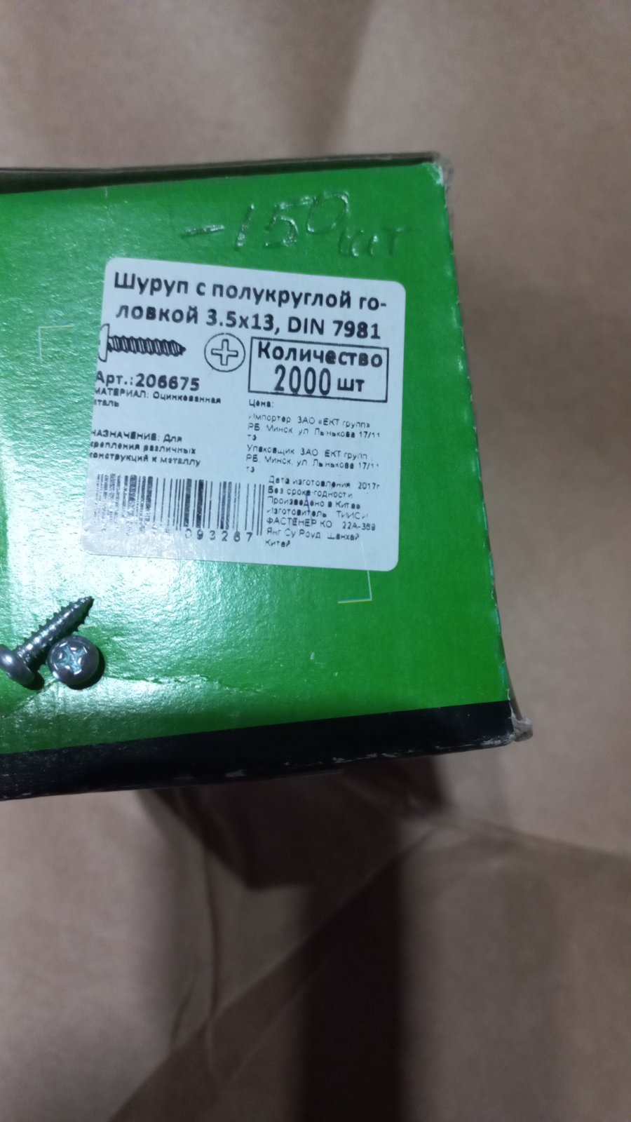 Шуруп с полукруглой головкой 3,5х13мм, DIN 7981 – 9 800 шт.